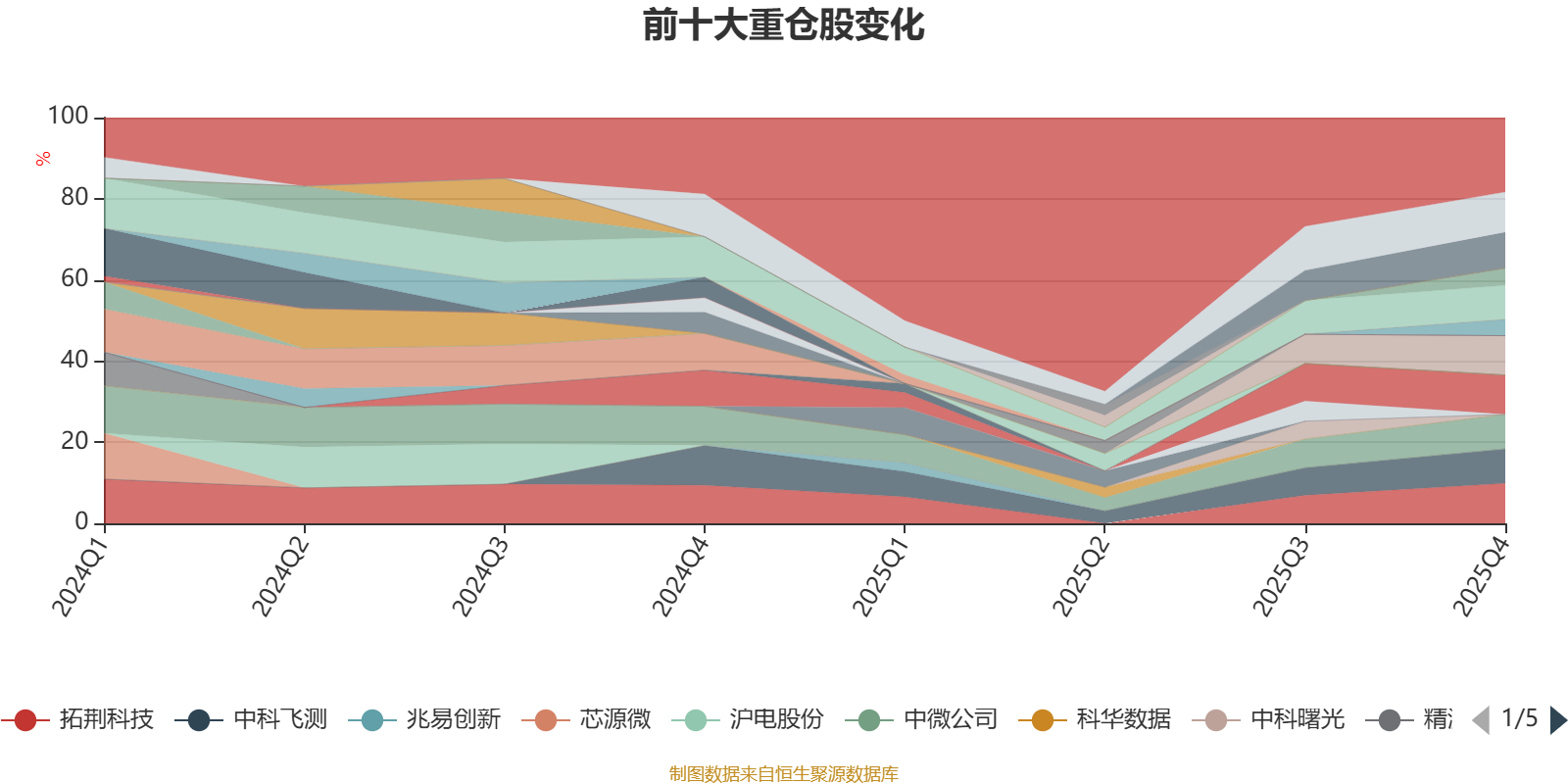截至2025年末,基金十大重仓股分别是中芯国际、拓荆科技、寒武纪、海光信息、华虹公司、中科飞测、中微公司、北方华创、中际旭创、新易盛。