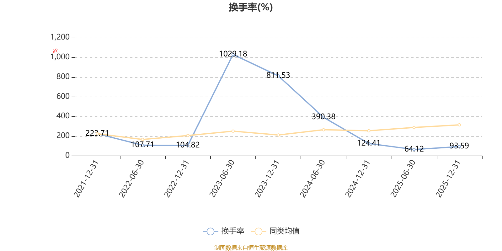 截至2025年12月31日,基金最近一年换手率约157%,持续1年低于同类均值。