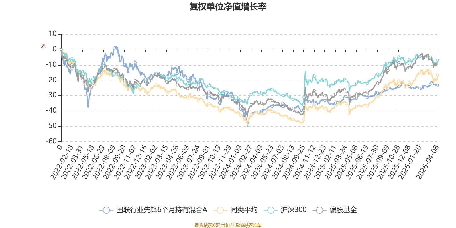 截至4月8日,国联行业先锋6个月持有混合A近三个月复权单位净值增长率为1.80%,位于同类可比基金256/689;近半年复权单位净值增长率为3.64%,位于同类可比基金326/689;近一年复权单位净值增长率为17.05%,位于同类可比基金586/685;近三年复权单位净值增长率为-12.50%,位于同类可比基金356/417。