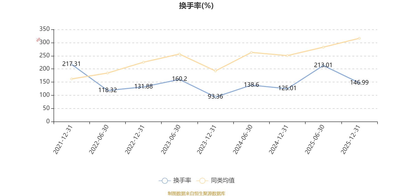 截至2025年12月31日,基金最近一年换手率约351.34%,持续4年低于同类均值。