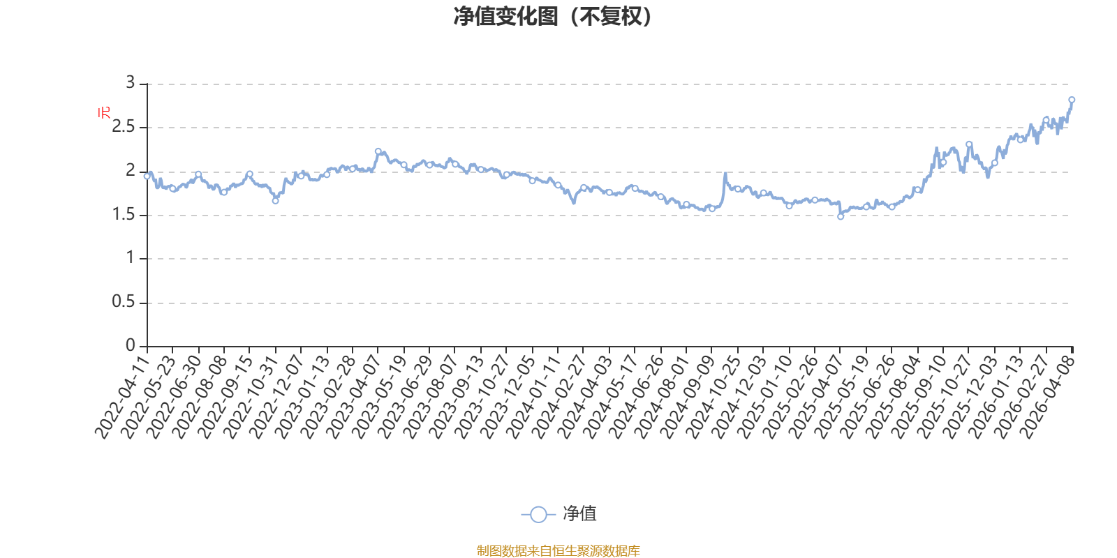 截至2025年末,基金十大重仓股分别是中际旭创、新易盛、生益科技、天孚通信、源杰科技、云铝股份、鹏辉能源、藏格矿业、阳光电源、国城矿业。