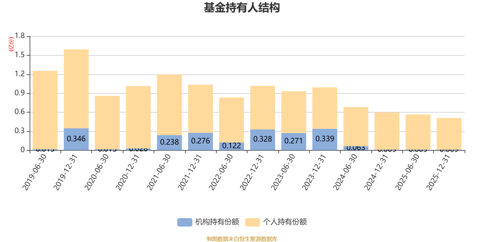 截至2025年12月31日,基金持有人共计4401户,合计持有5105.96万份。其中管理人员工持有9.39万份,占比0.18%,机构持有份额占比1.84%,个人投资者占比98.16%。