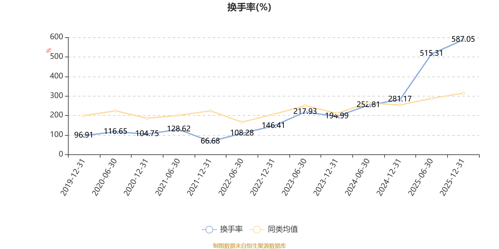 截至2025年12月31日,基金最近一年换手率约1081.74%,持续1年高于同类均值。
