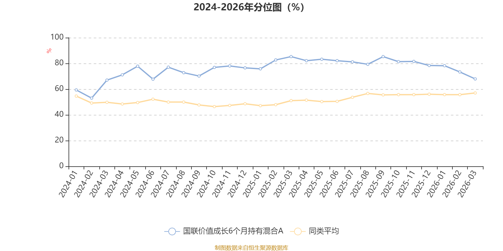 通过所选区间该基金净值增长率分位图,可以观察该基金与同类基金业绩比较情况。图为坐标原点到区间内某时点的净值增长率在同类基金中的分位数。