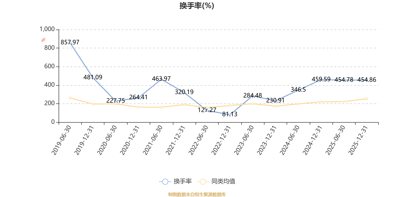 截至2025年12月31日,基金最近一年换手率约881.75%,持续3年高于同类均值。
