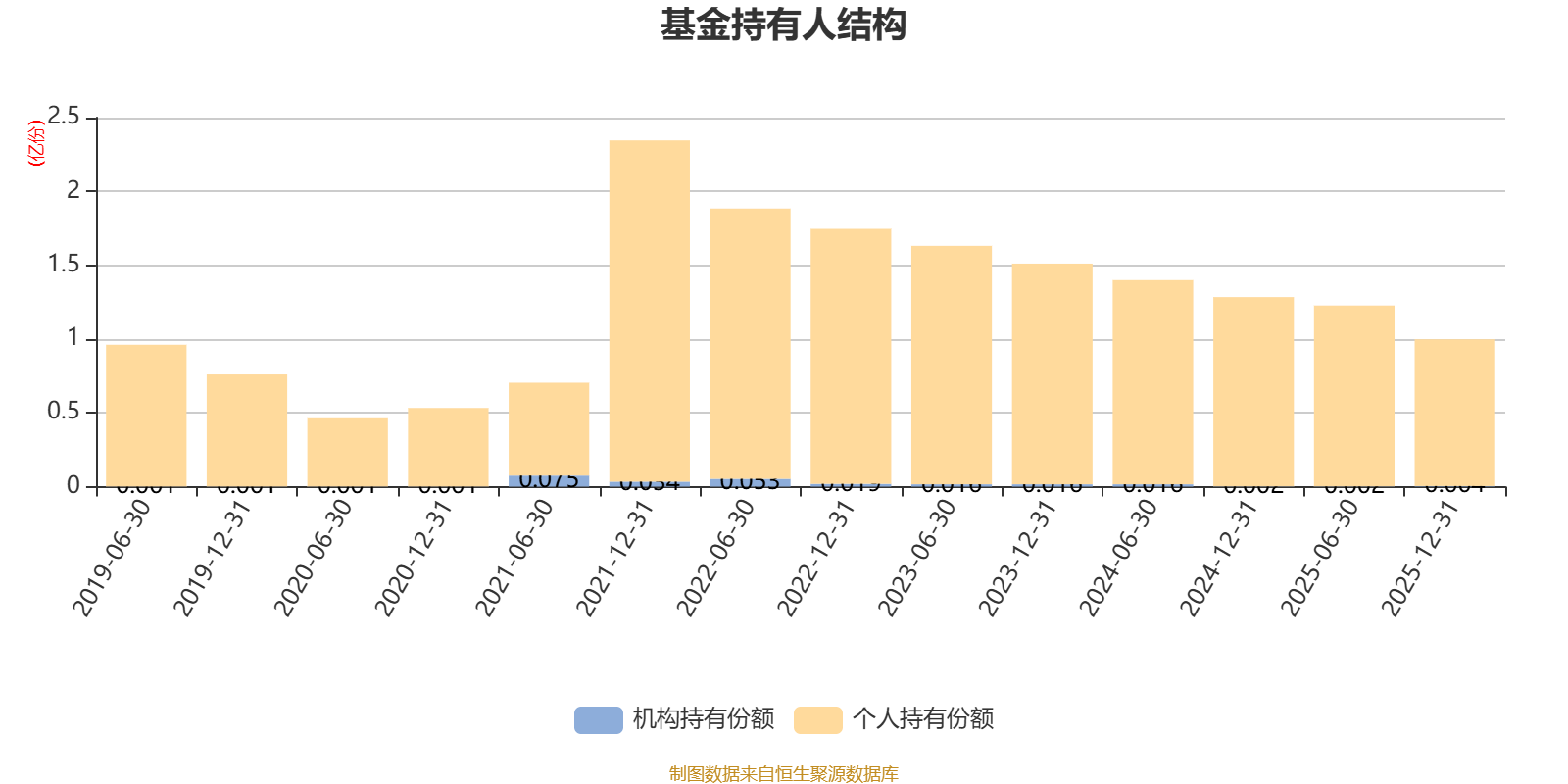 截至2025年12月31日,基金持有人共计1.43万户,合计持有9973.12万份。其中管理人员工持有7.5万份,占比0.08%,机构持有份额占比0.37%,个人投资者占比99.63%。
