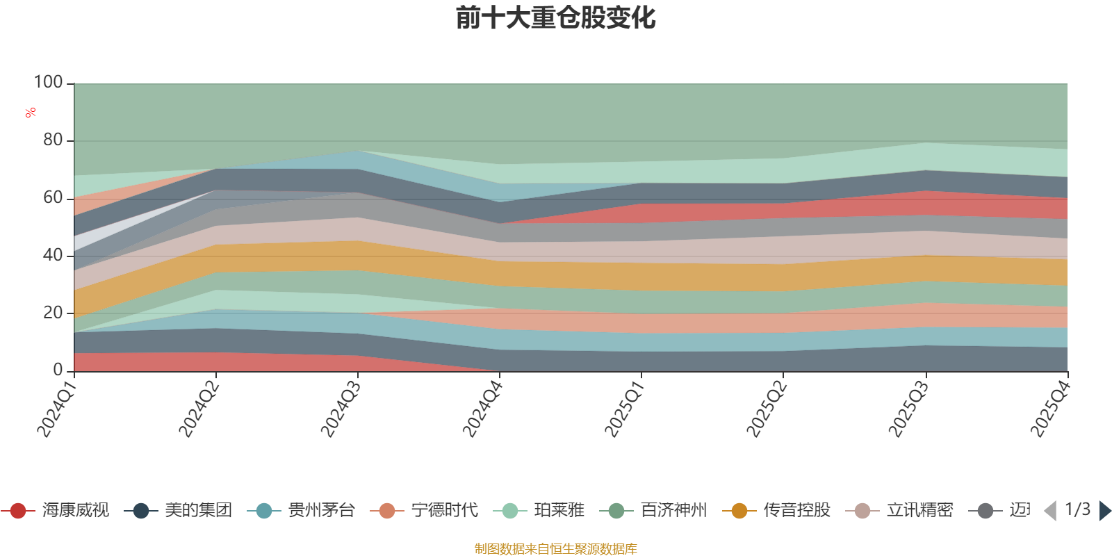 该基金持股集中度较高,近2年前十大重仓股集中度长期超过60%。截至2025年末,基金十大重仓股分别是顺丰控股、传音控股、美的集团、东鹏饮料、百济神州、宁德时代、恒瑞医药、立讯精密、贵州茅台、迈瑞医疗。