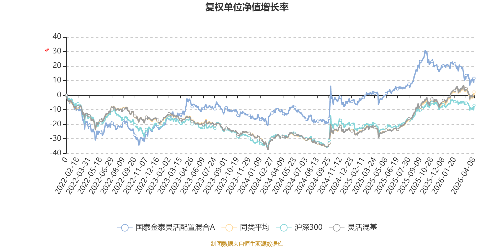 截至4月8日,国泰金泰灵活配置混合A近三个月复权单位净值增长率为-8.50%,位于同类可比基金1193/1287;近半年复权单位净值增长率为-14.18%,位于同类可比基金1240/1286;近一年复权单位净值增长率为18.13%,位于同类可比基金929/1286;近三年复权单位净值增长率为14.21%,位于同类可比基金630/1286。