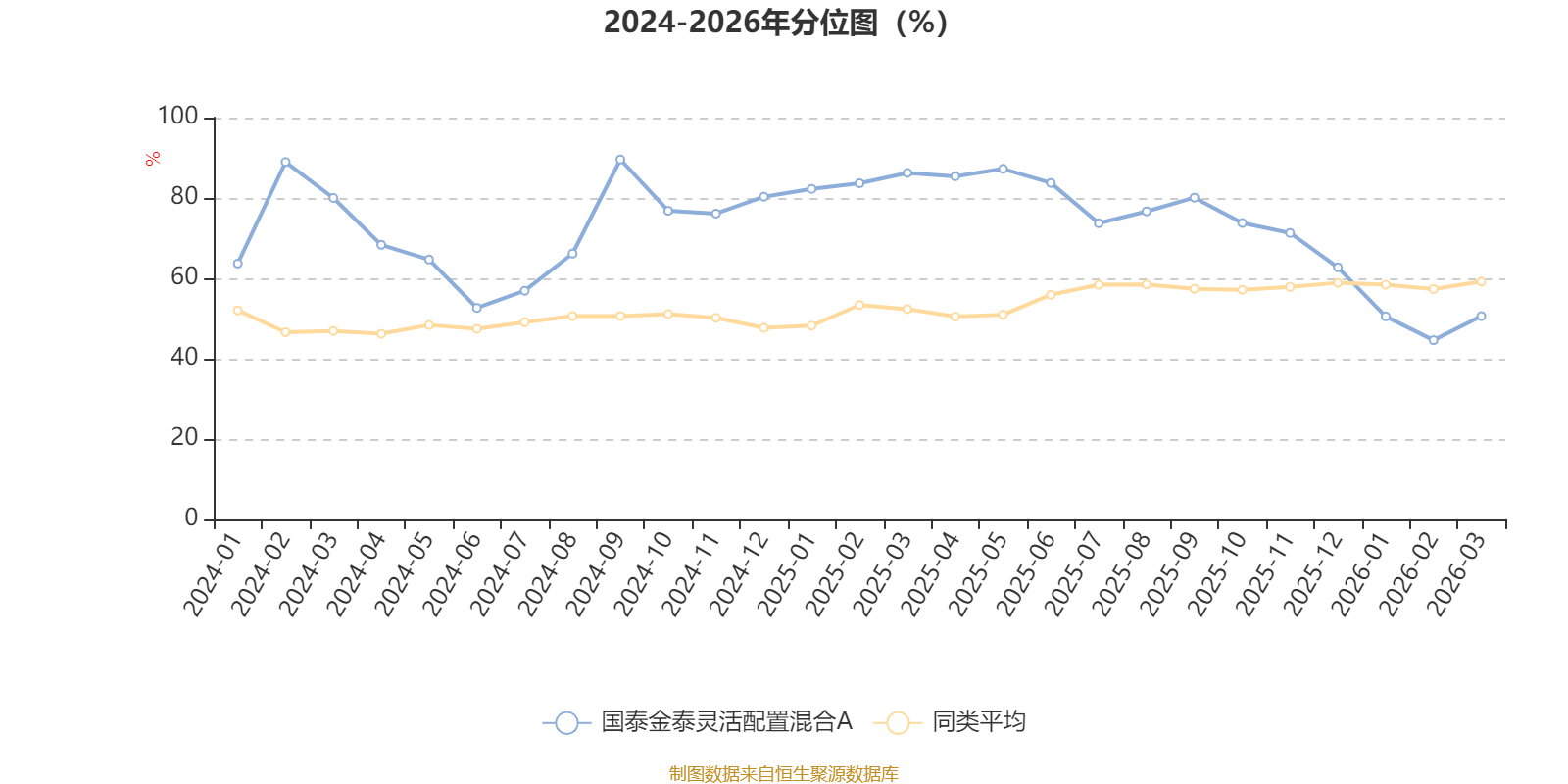 通过所选区间该基金净值增长率分位图,可以观察该基金与同类基金业绩比较情况。图为坐标原点到区间内某时点的净值增长率在同类基金中的分位数。