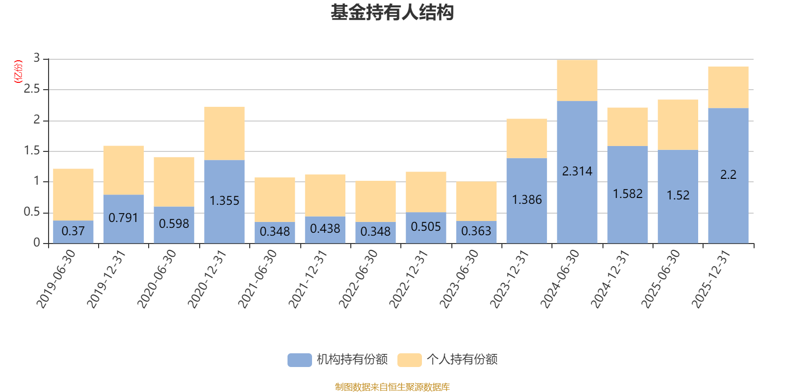 截至2025年12月31日,基金持有人共计1.64万户,合计持有2.87亿份。其中管理人员工持有91.17万份,占比0.32%,机构持有份额占比76.55%,个人投资者占比23.45%。