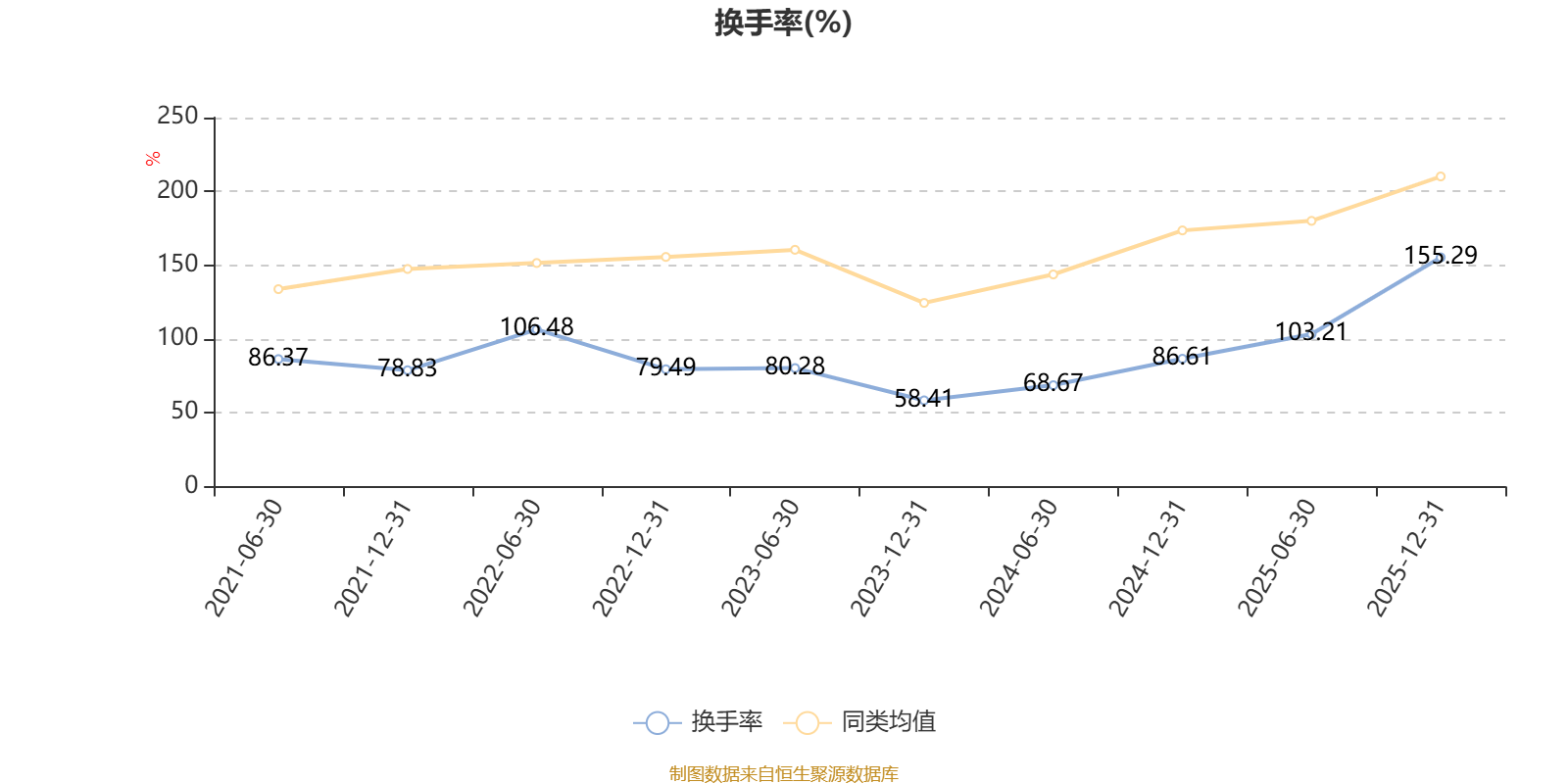 截至2025年12月31日,基金最近一年换手率约256.94%,持续低于同类均值。