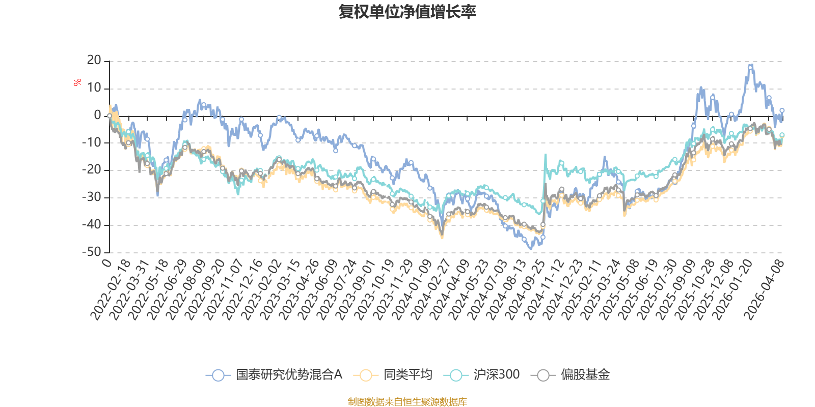 截至4月8日,国泰研究优势混合A近三个月复权单位净值增长率为-6.64%,位于同类可比基金241/265;近半年复权单位净值增长率为-6.76%,位于同类可比基金229/265;近一年复权单位净值增长率为59.95%,位于同类可比基金65/265;近三年复权单位净值增长率为7.86%,位于同类可比基金179/261。