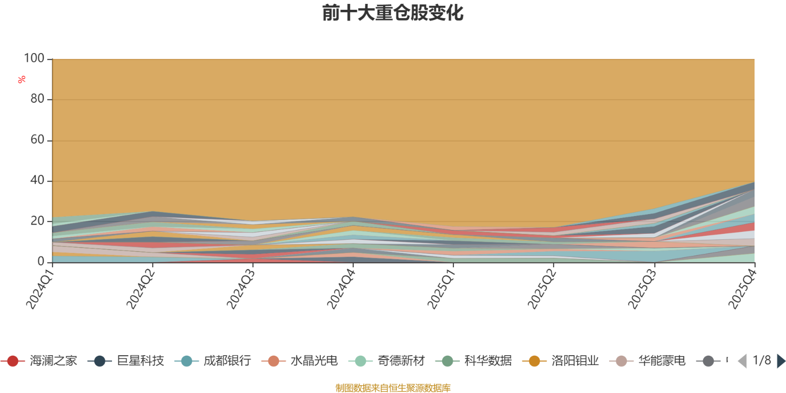 截至2025年末,基金十大重仓股分别是杰华特、奇德新材、中国巨石、和而泰、邦基科技、盛美上海、中信特钢、中联重科、紫金矿业、中国石油。