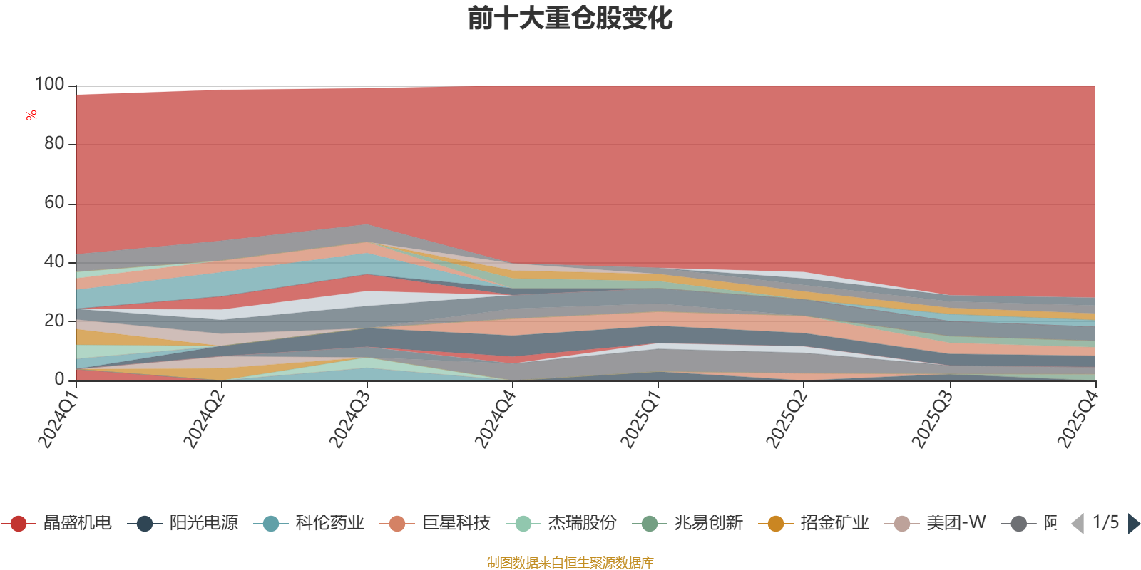 截至2025年末,基金十大重仓股分别是腾讯控股、宁德时代、小米集团-W、紫金矿业、中国人寿、阿里巴巴-W、贵州茅台、招商银行、华虹半导体、兆易创新。
