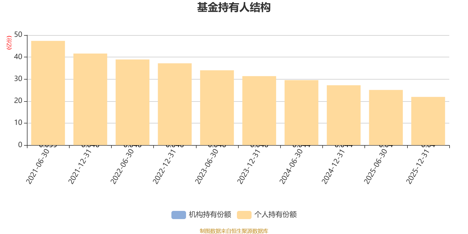 截至2025年12月31日,基金持有人共计2.77万户,合计持有21.94亿份。其中管理人员工持有10.24万份,机构持有份额占比0.18%,个人投资者占比99.82%。