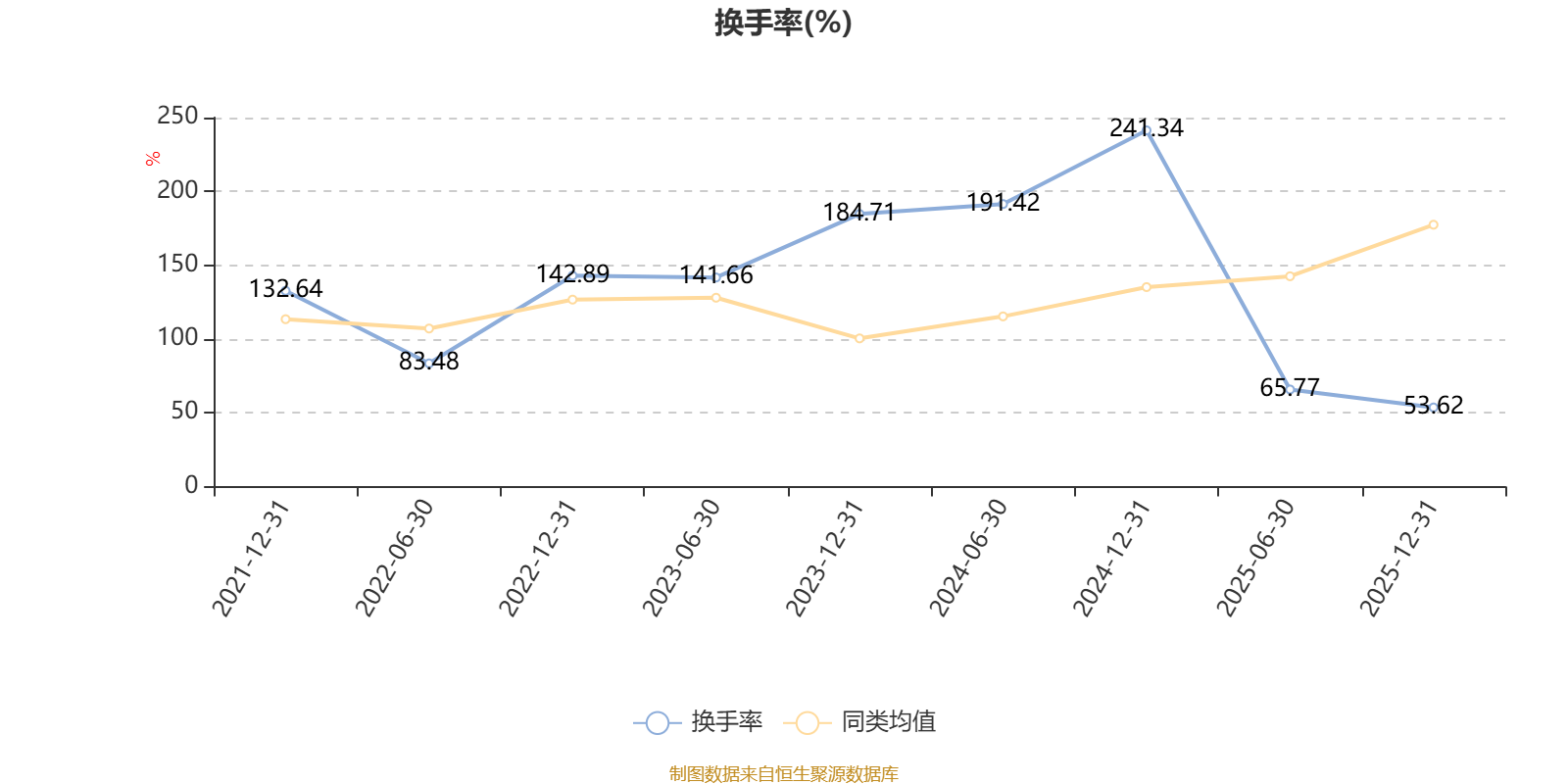 截至2025年12月31日,基金最近一年换手率约117.75%,持续1年低于同类均值。