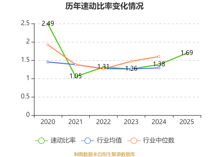2025年,公司流动比率为1.95,速动比率为1.69。