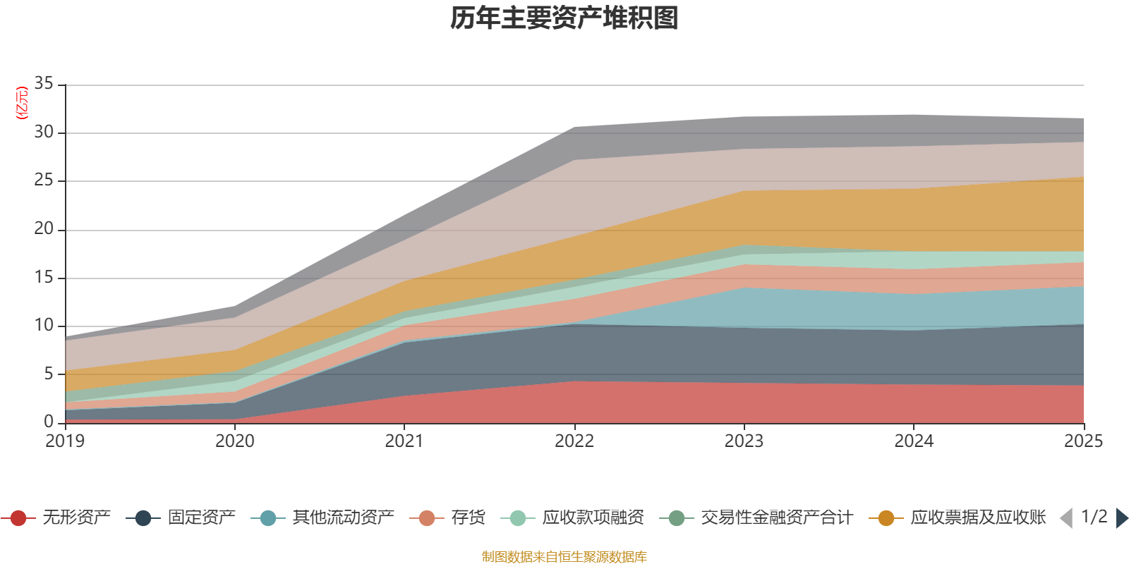 资产重大变化方面,截至2025年末,公司应收票据及应收账款较上年末增加18.89%,占公司总资产比重上升4.13个百分点;固定资产较上年末增加13.31%,占公司总资产比重上升2.58个百分点;货币资金较上年末减少18.29%,占公司总资产比重下降2.39个百分点;应收款项融资较上年末减少38.87%,占公司总资产比重下降2.22个百分点。