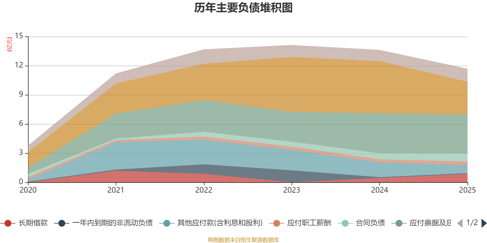 负债重大变化方面,截至2025年末,公司短期借款较上年末减少37.03%,占公司总资产比重下降6.11个百分点;其他应付款(含利息和股利)较上年末减少45.3%,占公司总资产比重下降2.14个百分点;长期借款较上年末增加99.07%,占公司总资产比重上升1.37个百分点;合同负债较上年末增加32.35%,占公司总资产比重上升0.66个百分点。