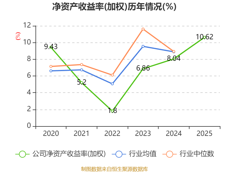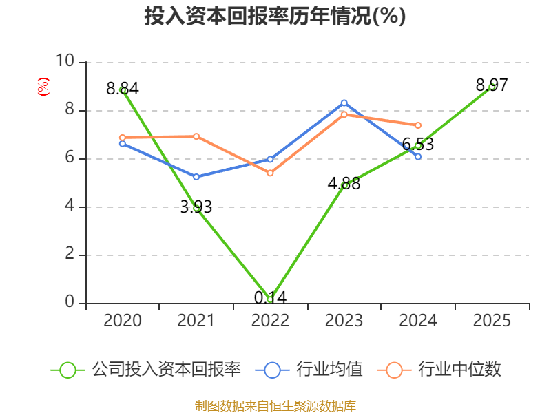 数据显示,2025年公司加权平均净资产收益率为10.62%,较上年同期上升2.58个百分点。公司2025年投入资本回报率为8.97%,较上年同期上升2.44个百分点。