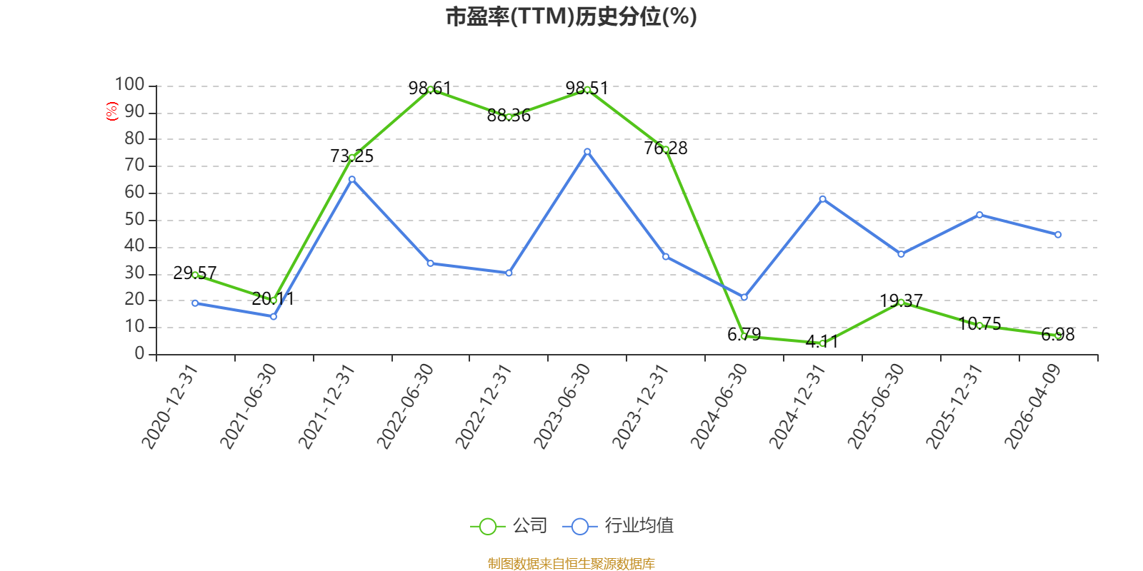 市盈率、市净率为负时,不显示当期分位数,会导致折线图中断。