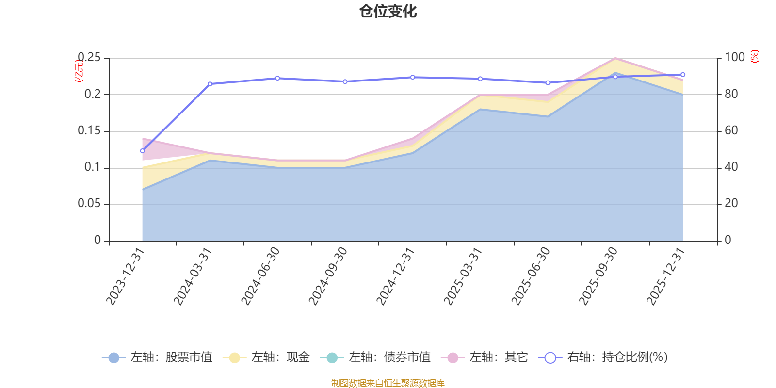 据定期报告数据统计,成立以来平均股票仓位为84.12%,同类平均为84.04%。2025年末基金达到91.03%的最高仓位,2023年末最低,为49.26%。