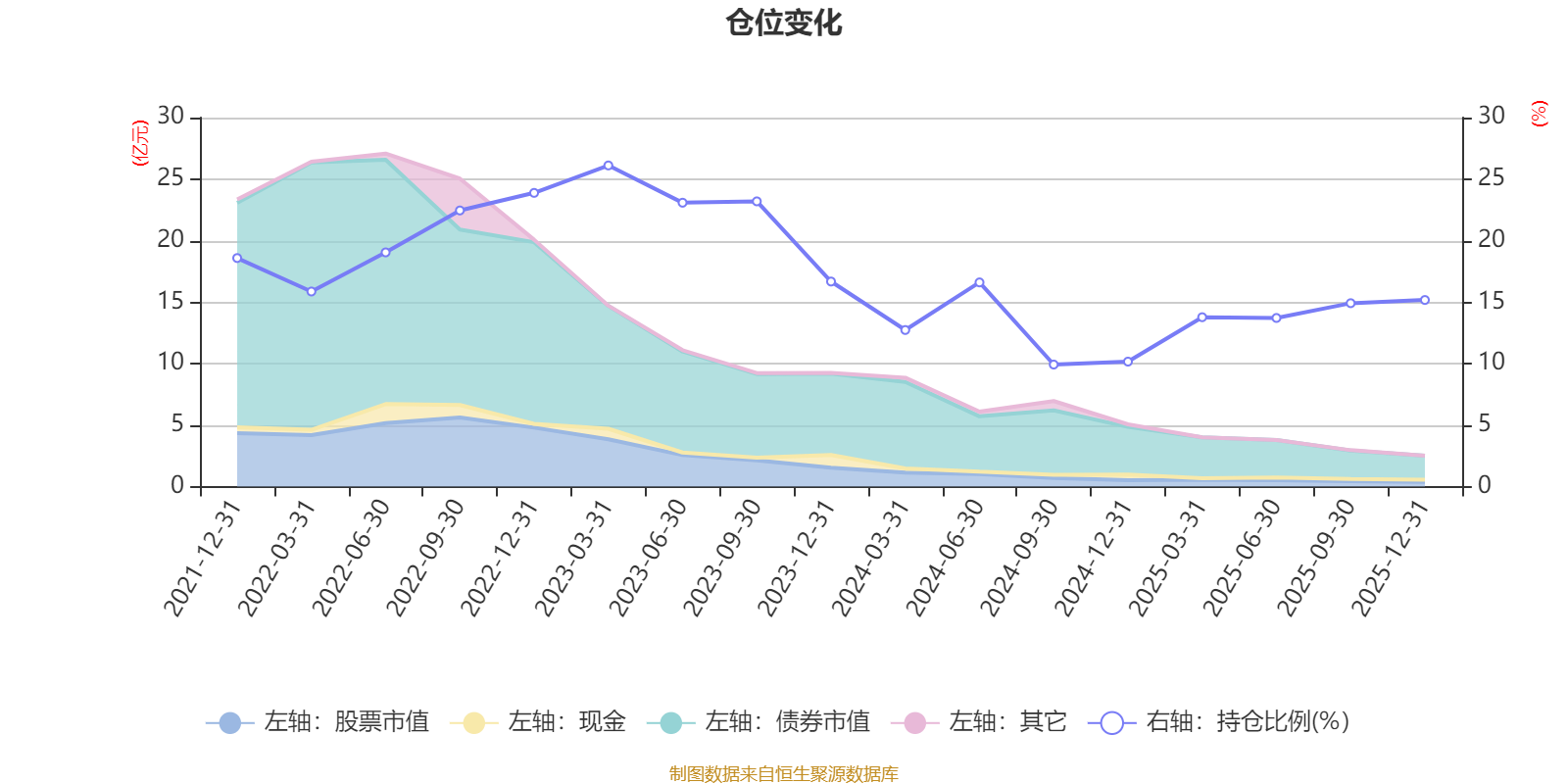 据定期报告数据统计,近三年平均股票仓位为16.34%,同类平均为19.2%。2023年一季度末基金达到26.11%的最高仓位,2024年三季度末最低,为9.92%。