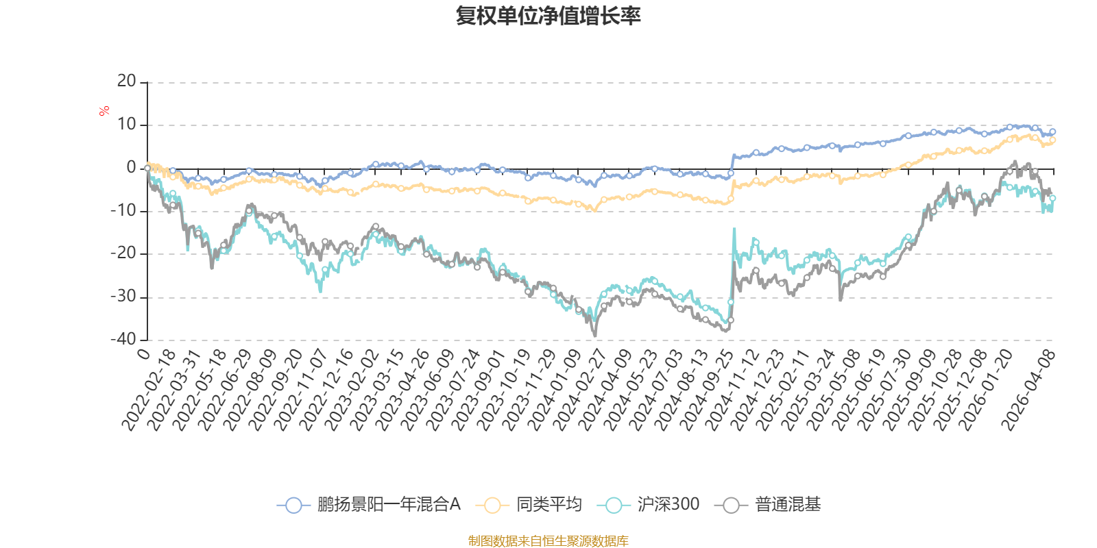 截至4月8日,鹏扬景阳一年混合A近三个月复权单位净值增长率为-0.18%,位于同类可比基金440/629;近半年复权单位净值增长率为0.10%,位于同类可比基金483/629;近一年复权单位净值增长率为4.13%,位于同类可比基金506/629;近三年复权单位净值增长率为7.47%,位于同类可比基金402/581。