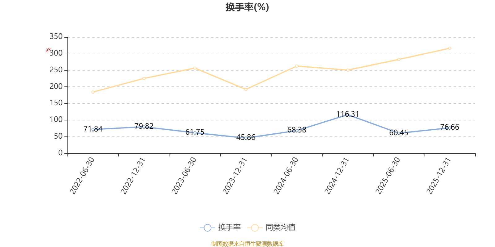 截至2025年12月31日,基金最近一年换手率约137.5%,持续低于同类均值。