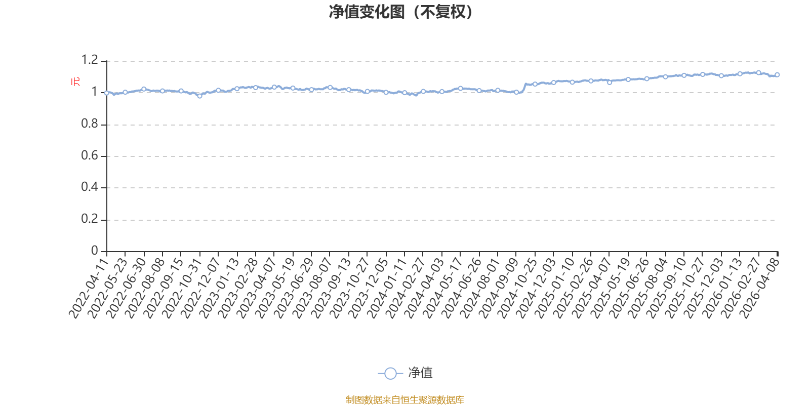 该基金属于偏债混合型基金。截至4月8日,单位净值为1.112元。基金经理是杨爱斌,目前管理的8只基金近一年均为正收益。其中,截至4月8日,鹏扬景源一年混合A近一年复权单位净值增长率最高,达6%;鹏扬聚利六个月债券A最低,为3.47%。