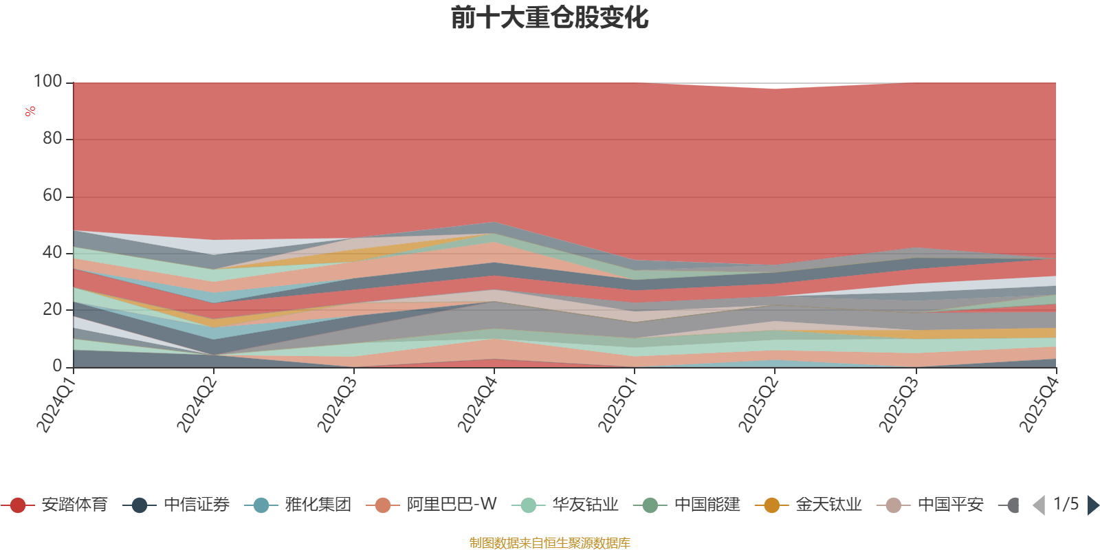截至2025年末,基金十大重仓股分别是涪陵榨菜、昆仑能源、阿里巴巴-W、金天钛业、北京人力、伊利股份、华友钴业、太阳纸业、中信证券、洽洽食品。