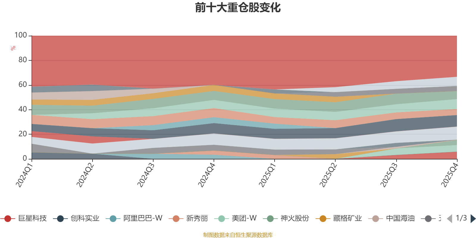 该基金持股集中度较高。截至2025年末,基金重仓股分别是中国海洋石油、腾讯控股、美的集团、紫金矿业、贵州茅台、巨星科技、美团-W、宝丰能源、神火股份、新奥能源、中国海油。