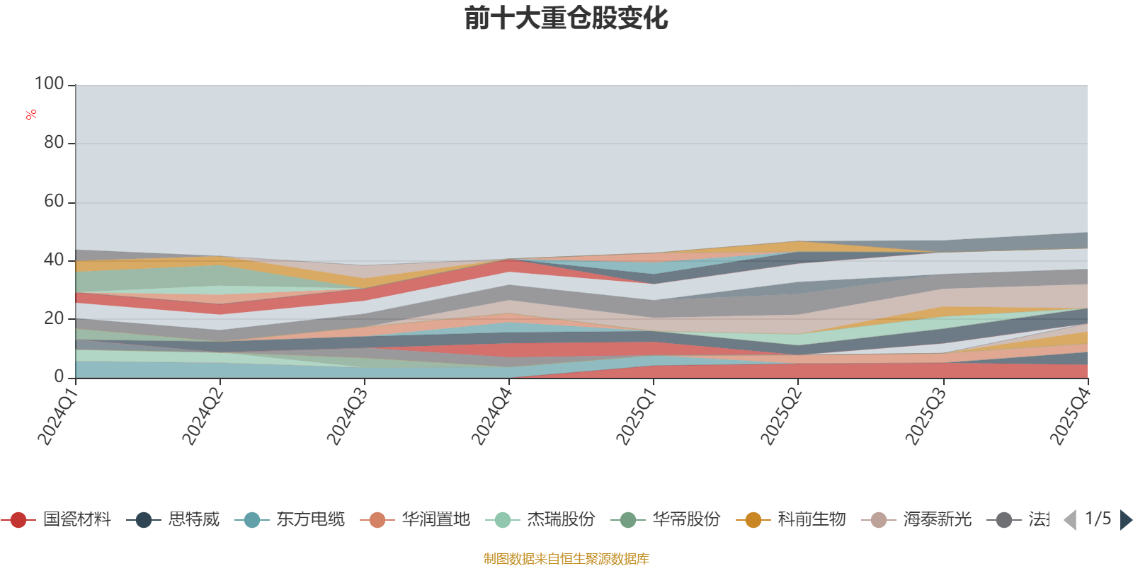 截至2025年末,基金十大重仓股分别是广钢气体、腾讯控股、紫金矿业、宁德时代、固生堂、国瓷材料、思特威、科前生物、华润置地、海泰新光。