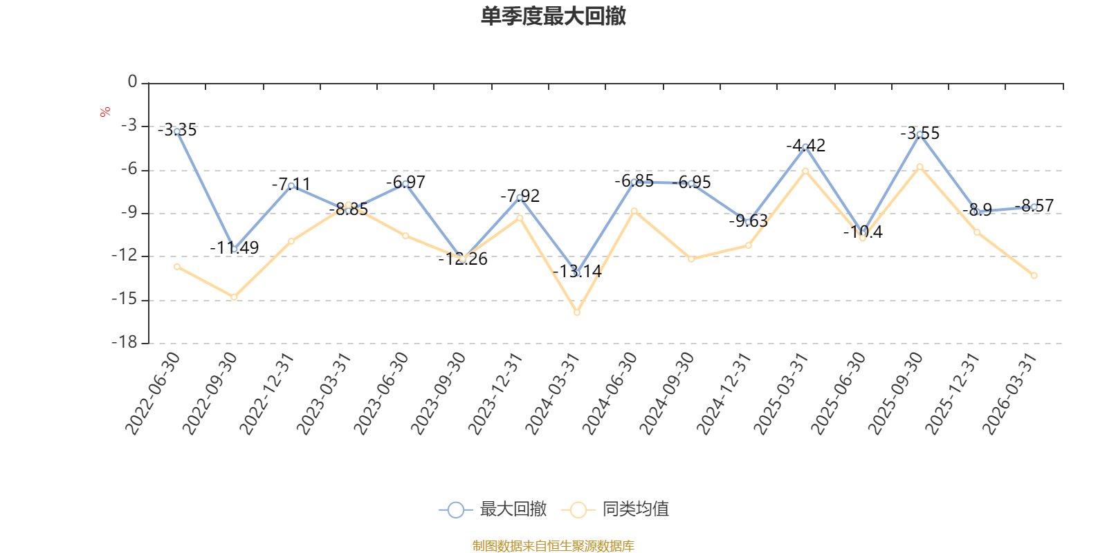截至4月8日,基金近三年最大回撤为28.37%,同类可比基金排名105/392。单季度最大回撤出现在2024年一季度,为13.14%。