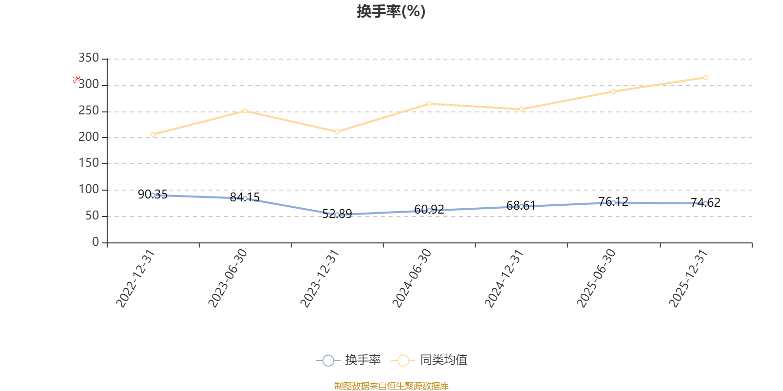 截至2025年12月31日,基金最近一年换手率约149.77%,持续低于同类均值。