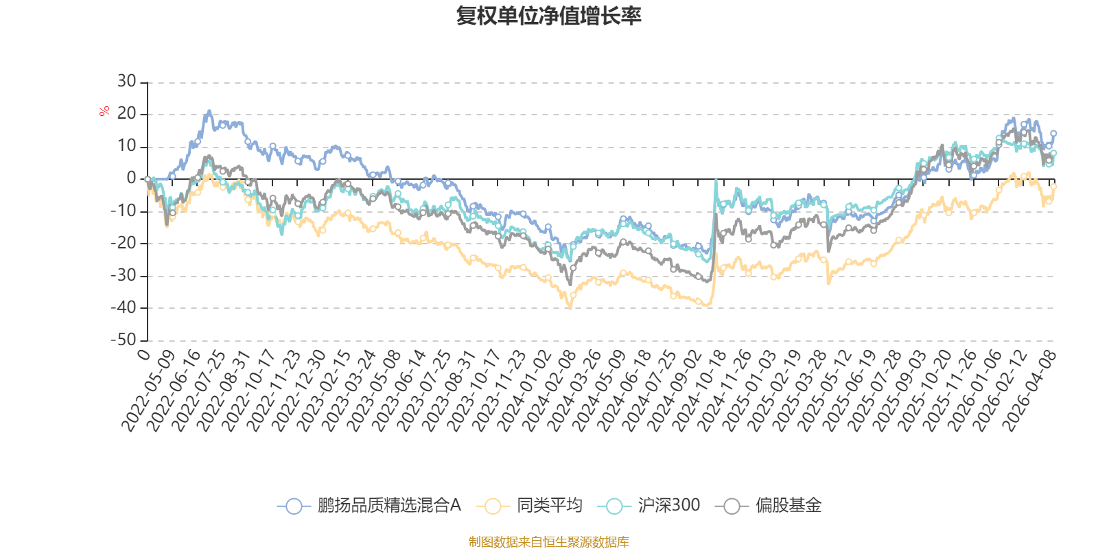 截至4月8日,鹏扬品质精选混合A近三个月复权单位净值增长率为1.67%,位于同类可比基金261/689;近半年复权单位净值增长率为6.11%,位于同类可比基金252/689;近一年复权单位净值增长率为36.80%,位于同类可比基金361/685;近三年复权单位净值增长率为12.03%,位于同类可比基金213/417。