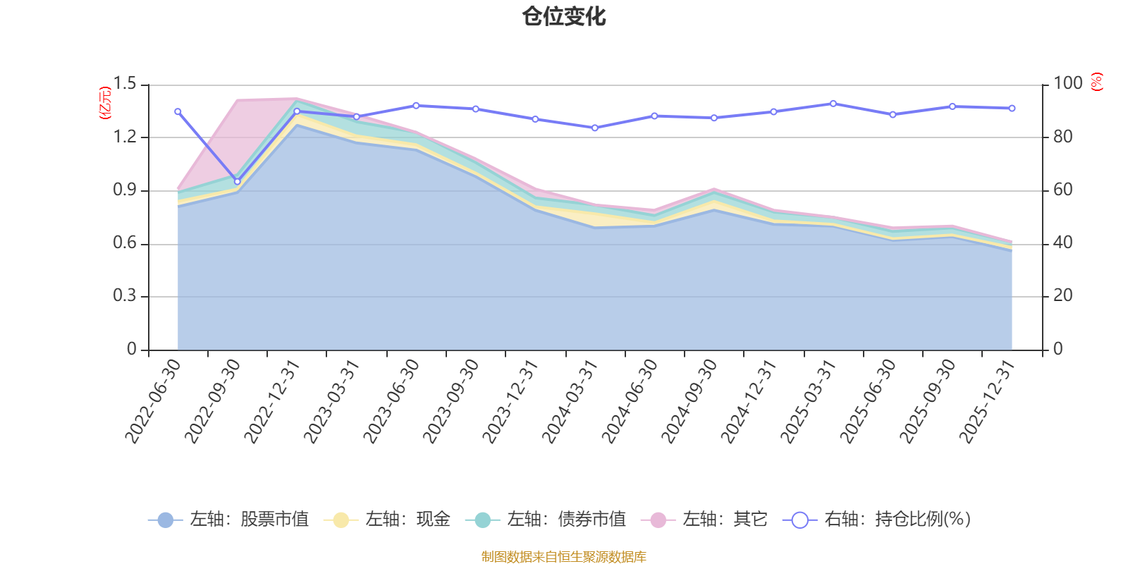 据定期报告数据统计,近三年平均股票仓位为89.28%,同类平均为84.04%。2025年一季度末基金达到92.86%的最高仓位,2022年三季度末最低,为63.46%。