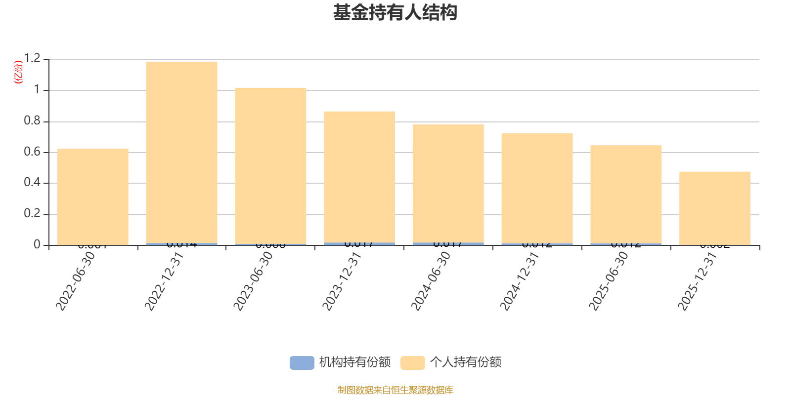 截至2025年12月31日,基金持有人共计720户,合计持有4738.45万份。其中管理人员工持有87.69万份,占比1.85%,机构持有份额占比0.47%,个人投资者占比99.53%。