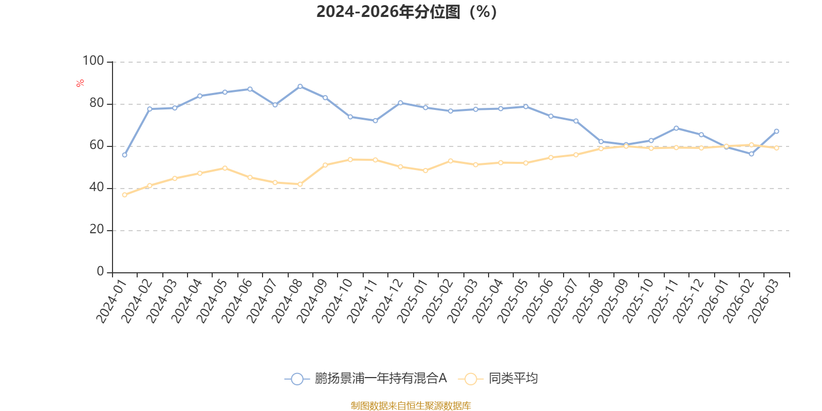 通过所选区间该基金净值增长率分位图,可以观察该基金与同类基金业绩比较情况。图为坐标原点到区间内某时点的净值增长率在同类基金中的分位数。