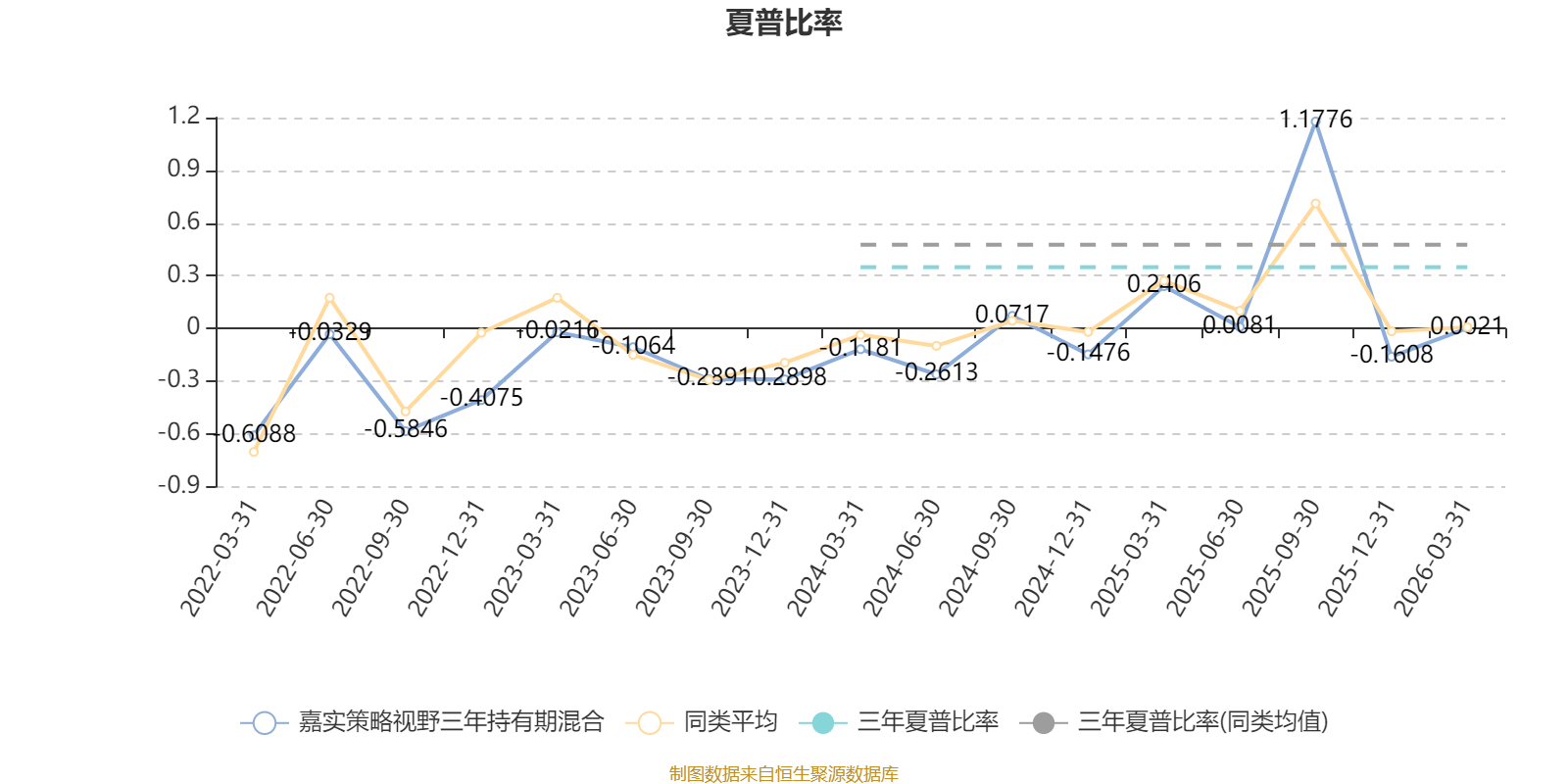 截至3月31日,基金近三年夏普比率为0.3488,位于同类可比基金362/550。