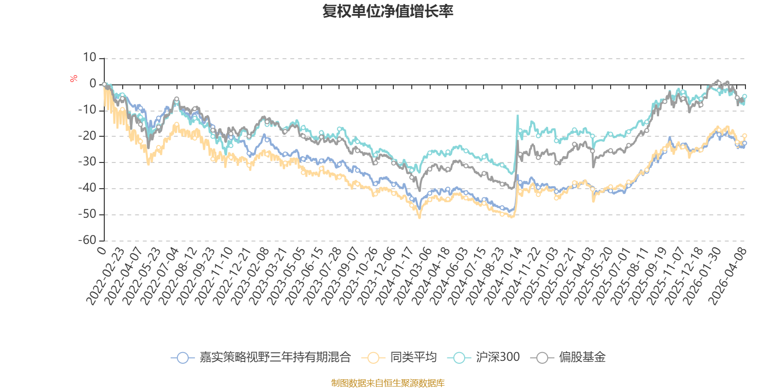 截至4月8日,嘉实策略视野三年持有期混合近三个月复权单位净值增长率为-1.46%,位于同类可比基金372/621;近半年复权单位净值增长率为-1.78%,位于同类可比基金421/621;近一年复权单位净值增长率为37.53%,位于同类可比基金350/618;近三年复权单位净值增长率为5.02%,位于同类可比基金367/559。