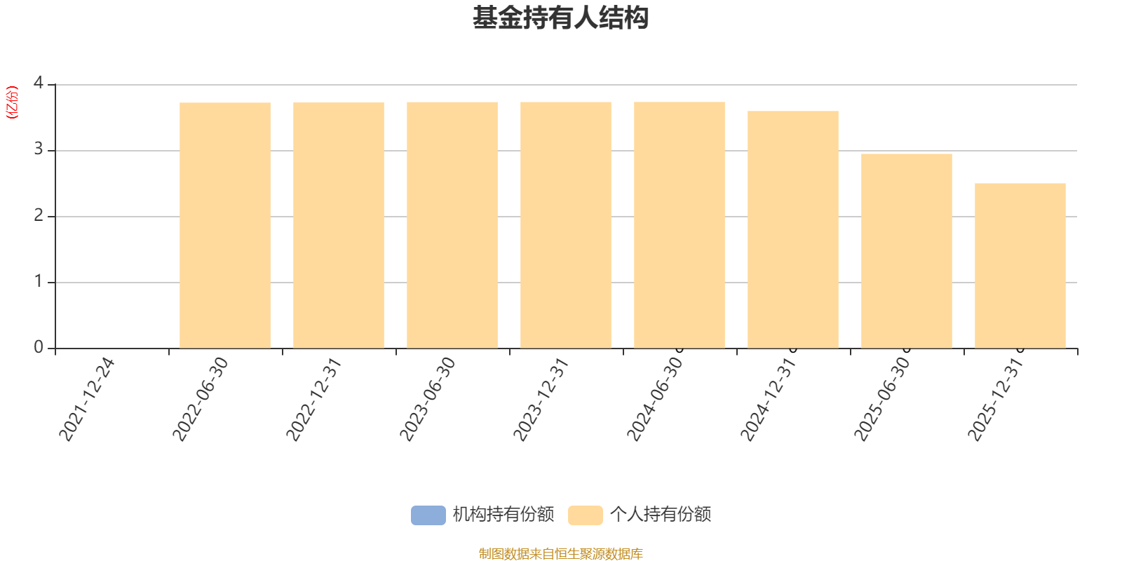 截至2025年12月31日,基金持有人共计3107户,合计持有2.5亿份。其中管理人员工持有128.74万份,占比0.52%,机构持有份额占比0.00%,个人投资者占比100.00%。