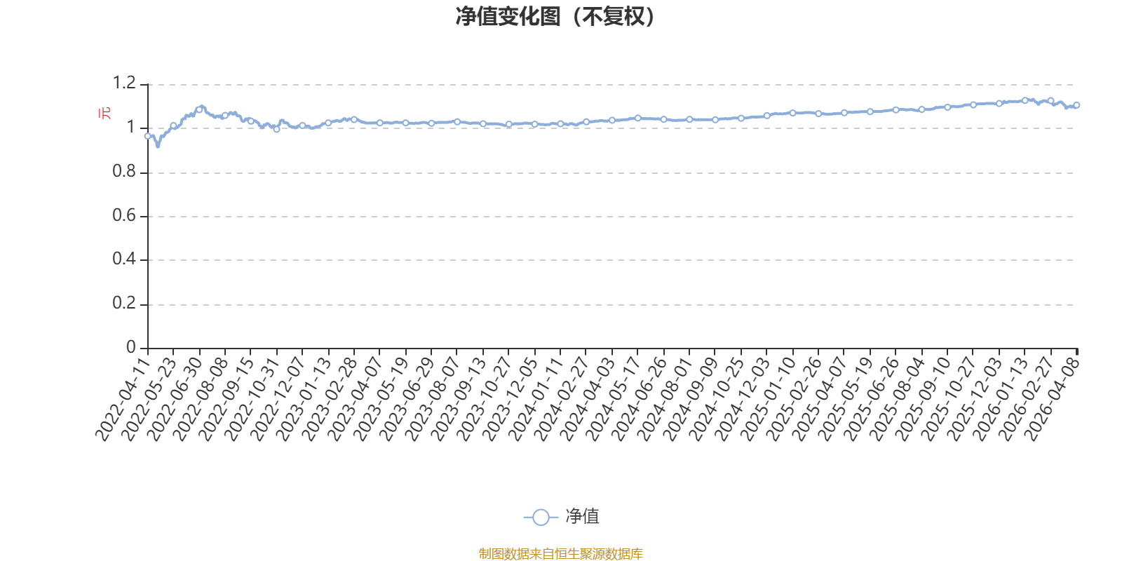 该基金属于偏债混合型基金。截至4月8日,单位净值为1.105元。基金经理是刘冬和管悦。