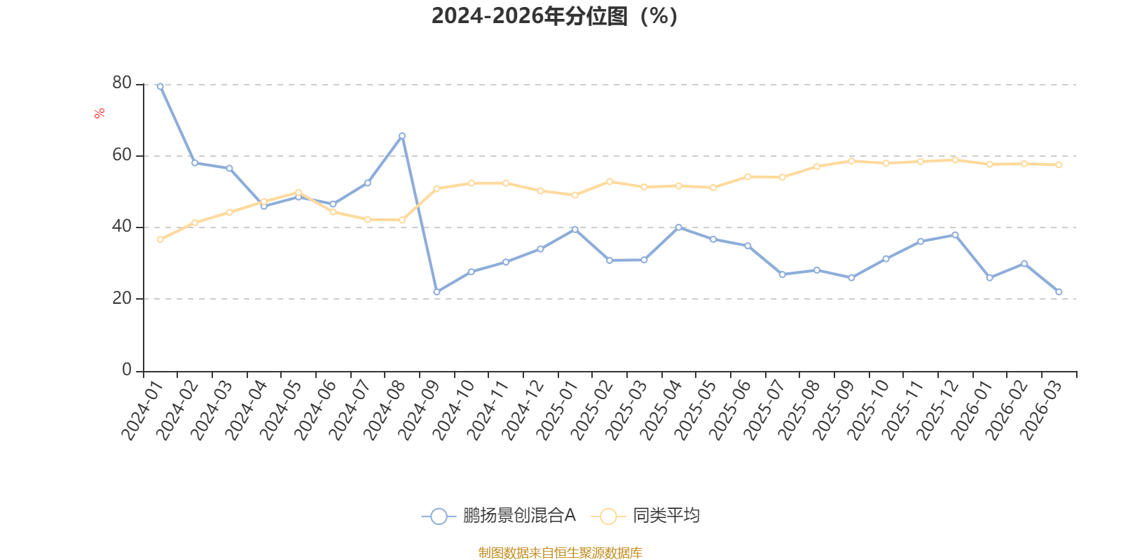 通过所选区间该基金净值增长率分位图,可以观察该基金与同类基金业绩比较情况。图为坐标原点到区间内某时点的净值增长率在同类基金中的分位数。