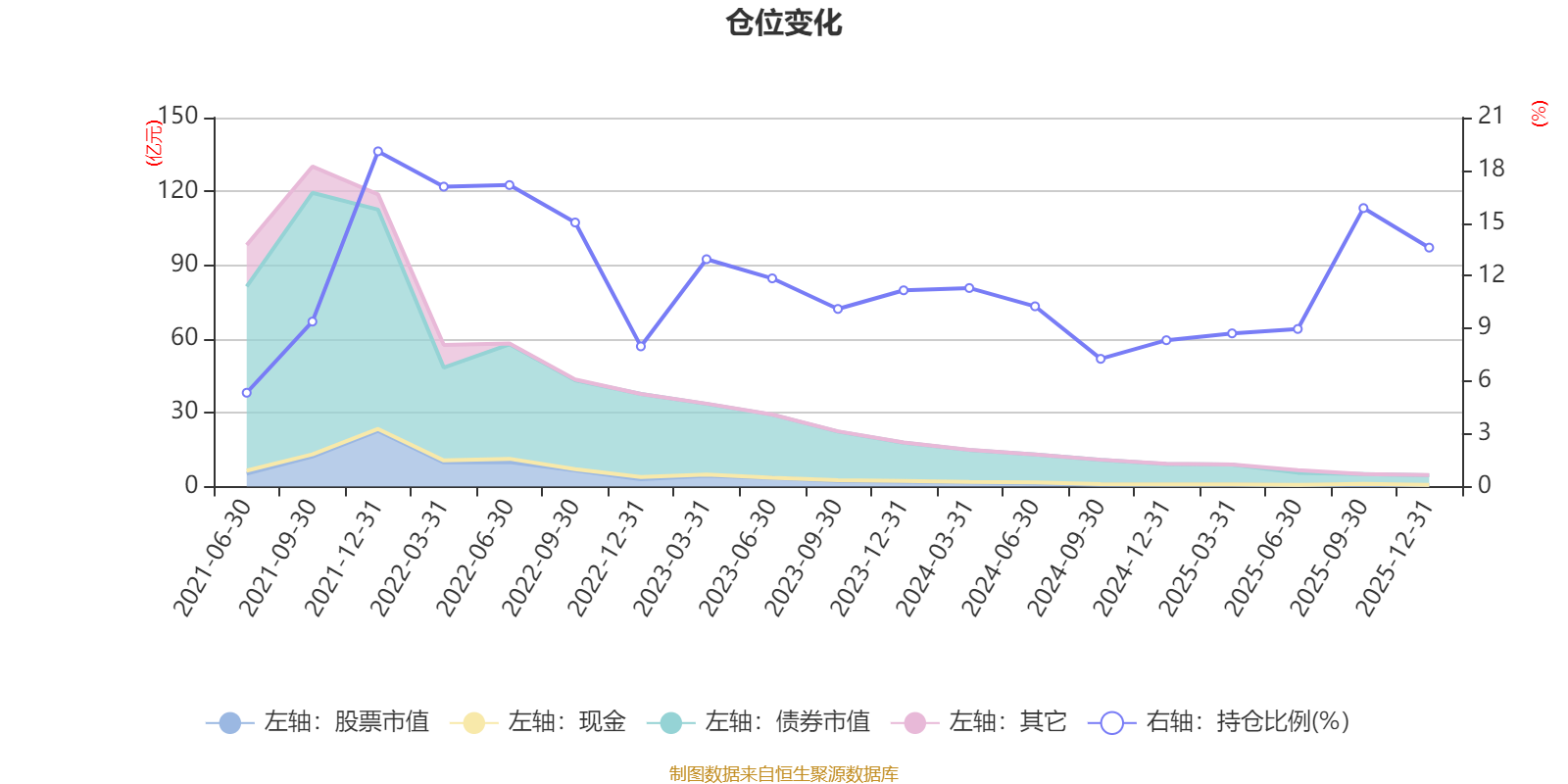 据定期报告数据统计,近三年平均股票仓位为10.86%,同类平均为19.2%。2021年末基金达到19.08%的最高仓位,2021年上半年末最低,为5.34%。