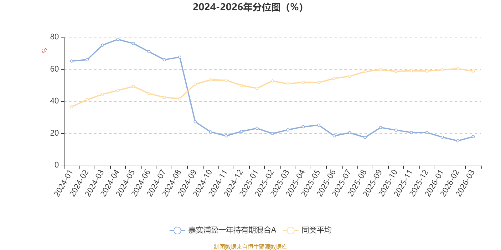 通过所选区间该基金净值增长率分位图,可以观察该基金与同类基金业绩比较情况。图为坐标原点到区间内某时点的净值增长率在同类基金中的分位数。