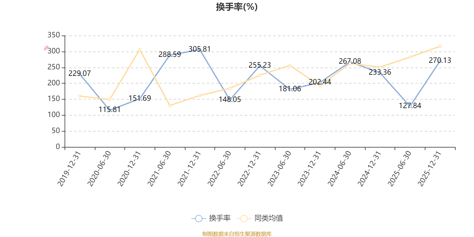 截至2025年12月31日,基金最近一年换手率约388.67%,持续1年低于同类均值。