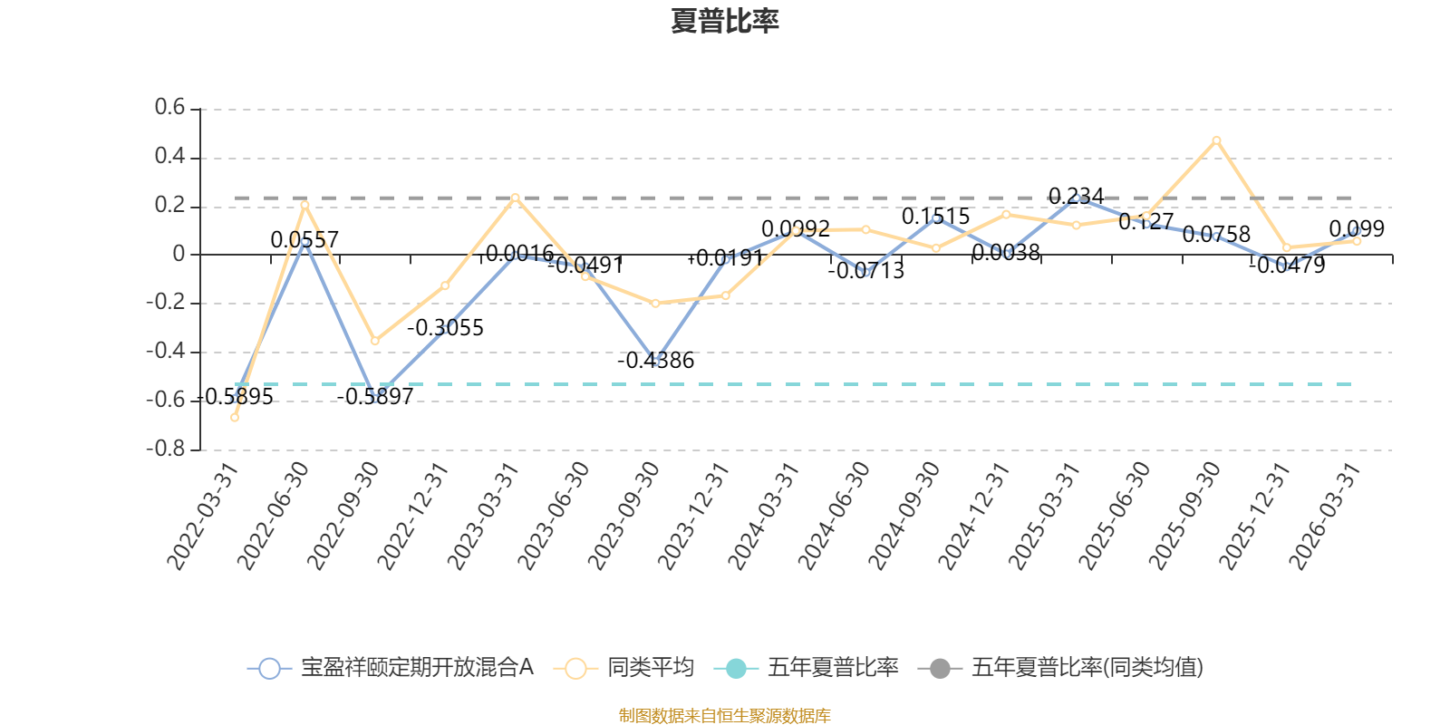 截至3月31日,基金近三年夏普比率为0.1579,位于同类可比基金443/550。