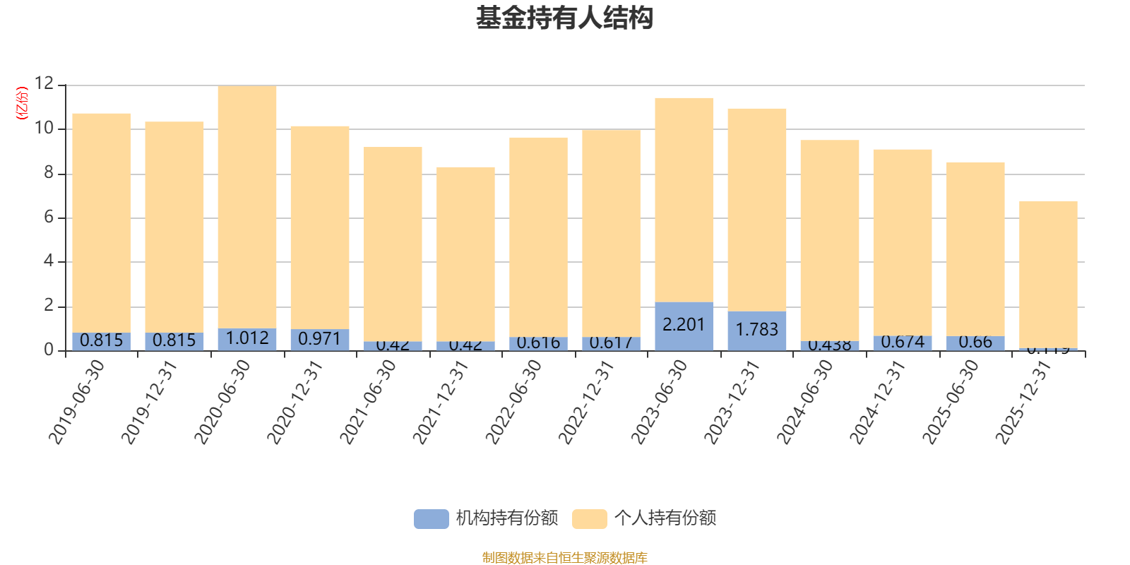 截至2025年12月31日,基金持有人共计3.72万户,合计持有6.74亿份。其中管理人员工持有2.59万份,机构持有份额占比1.76%,个人投资者占比98.24%。