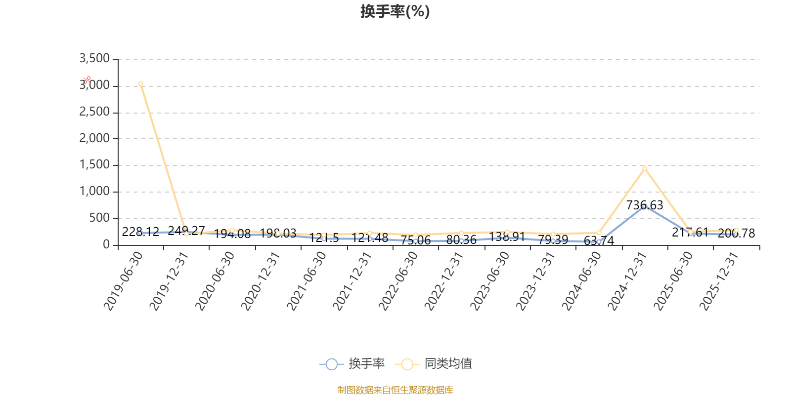 截至2025年12月31日,基金最近一年换手率约420.71%,持续6年低于同类均值。